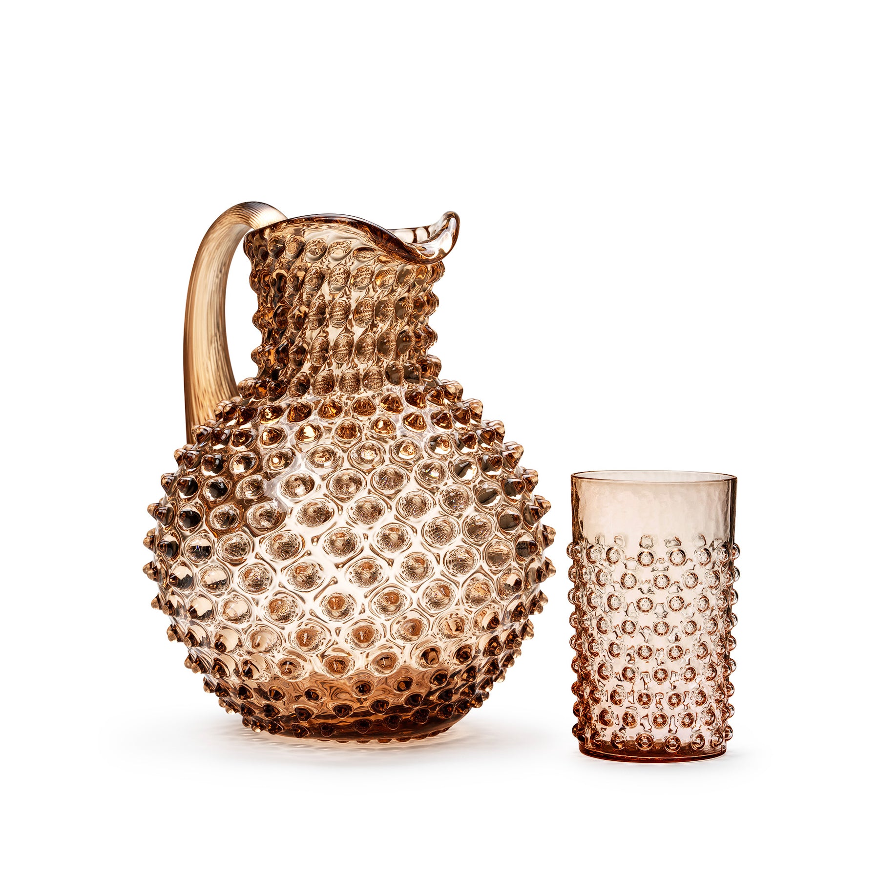 All carafes are handmade and therefore unique in color and appearance giving you a signature collectable piece. The Caroline carafe can be combined as a functional carafe for refreshing beverages as well as a true decorative item for your home.